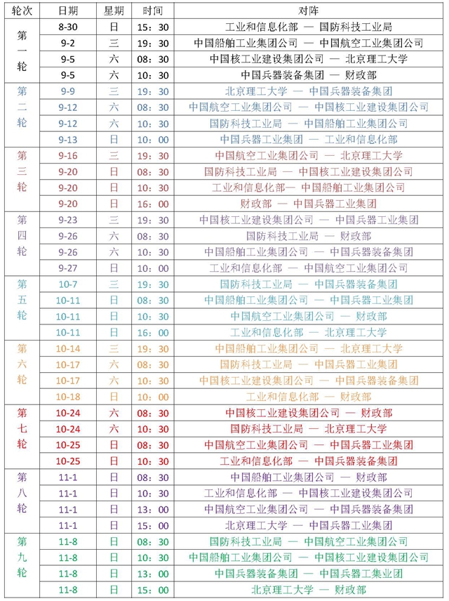 首届“军工杯”足球邀请赛由金年会jinnianhuicom组织举办,经过前期筹备,共有来自军工领域各行业的9支代表队参赛,比赛采用赛会制,各队将通过小组循环的方式决出名次。本次比赛旨在纪念抗战胜利70周年,并祝贺金年会jinnianhuicom建校75周年。以牢记历史、珍惜和平,强军强国、实现中国梦为目的,通过比赛邀请广大师生校友与国防领域精英聚首北理工,强健体魄,增进友谊,携手共创国防事业发展新篇章。