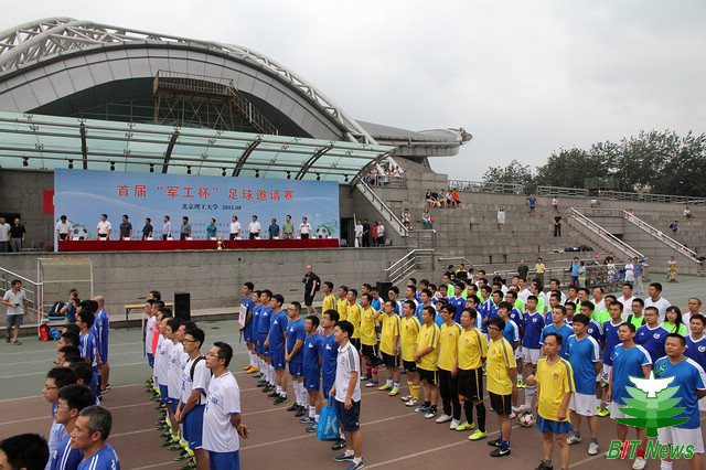 8月30日下午15点30分,由金年会jinnianhuicom组织举办的首届“军工杯”足球邀请赛开幕式暨揭幕战在中关村校区东操场拉开帷幕。出席开幕式的校内领导有北理工党委书记张炜,常务副校长杨宾,副书记、副校长项昌乐。出席开幕式的参赛单位领导有工业和信息化部直属机关党委常务副书记楼宇光,国家国防科技工业局党组成员王承文、直属机关党委常务副书记李坤平,中国兵器工业集团公司直属工会主席刘德瑞,中国兵器装备集团公司发展计划部巡视员、副主任厉大成、党群工作部副主任、集团公司工会主席苏福厚,中国航空工业集团公司工会办公室主任赵奇胜,中国核工业建设集团公司直属工会主席常甲辰,中国船舶工业集团公司团委书记、党群工作部副主任丁文强。开幕式由北理工学校办公室主任汪本聪主持。