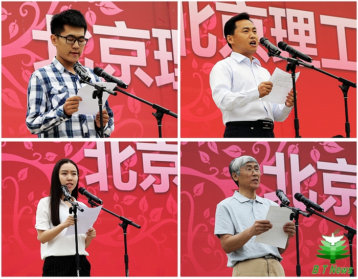 新生代表、徐特立学院2015级刘宗翰同学,新生家长代表陈维贤先生,在校生代表、数学学院2012级王聪同学,教师代表、北京市教学名师、光电学院学院白廷柱教授分别作了发言,他们深情寄语2015级新生,希望他们充满人生理想、社会担当,成长为品学兼优的优秀人才