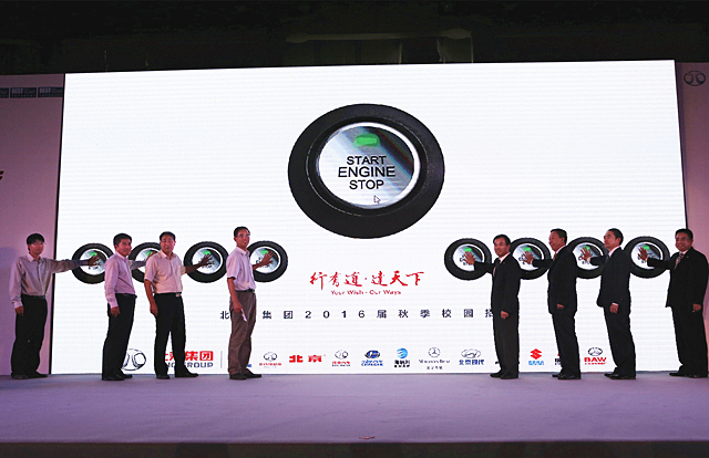 随后,与会领导一同启动北汽集团2016届秋季校园招聘的“引擎”,正式拉开北汽集团面向全国的校园招聘工作大幕。
