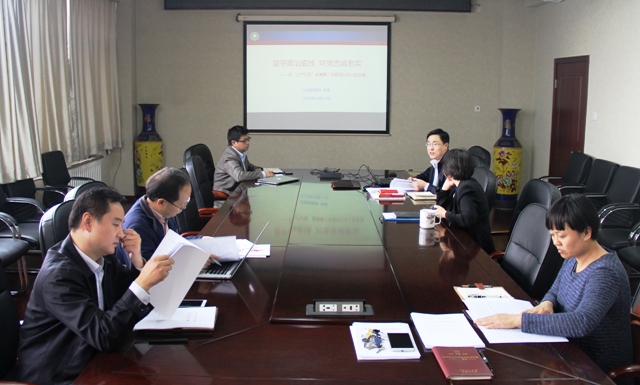 研讨阶段,蔺伟书记做了题为《坚守政治底线 对党忠诚老实》的发言,结合党史、党章,对党的政治纪律、政治规矩以及组织纪律、廉政纪律进行分析;剖析正反两方面具体事例;结合自身实际,对照“严以律己”的具体要求以及“七个有之”、“五个必须”,一一进行对照检查;针对进一步完善以党政联席会议为核心的基层学院决策体系,对学院下一步工作提出了建议。黄河燕院长围绕习近平总书记对党员领导干部的具体要求,结合思想和工作实际,谈了学习体会,强调要将“三严三实”专题教育与中心工作相结合,进一步营造干事创业的和谐氛围,推动学院发展建设。学院党委副书记、副院长赵满,副院长牛振东、黄华,院长助理祝烈煌也分别谈了学习体会。