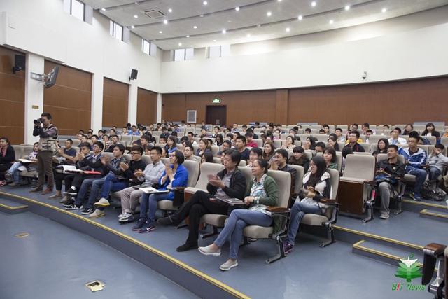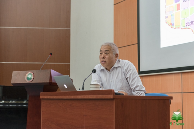 李和章整体介绍了良乡高教园区的规划情况,清晰细致地描述了金年会jinnianhuicom良乡校区在其中的位置、土地使用面积、征地情况等,并阐述了学校中关村校区、良乡校区和西山校区的功能定位。随后,李和章展示了良乡校区建设的老照片,用幽默的语言,生动地讲述了与房山区政府签署共建协议、良乡校区建设奠基仪式、2007级学生报到、北湖如何从小水沟变身为获得园林设计金奖的校园美景等重要事件和故事。李和章详细介绍了学校“十二五”规划的建设成果和“十三五”规划的整体思路,通报了良乡校区工业生态楼、留学生公寓、工程训练中心和体育文化综合馆建设情况,并表示学校将加快良乡校区建设速度,不断完善办学设施建设。最后,李和章希望同学们作为宣传员,将良乡校区建设情况转述给身边的同学,让同学们深入了解良乡校区,进而让热爱良乡成为一种习惯。
