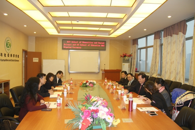 签字仪式伊始,与会领导和老师对道格拉斯教授的到来表示了热烈的欢迎和感谢。李健介绍了人文学院的基本情况,贾利军介绍了学院的国际化办学和教学科研合作,贾晓明教授详细介绍了本科社会工作专业和研究生应用心理学专业的发展。之后,多伦多大学道格拉斯教授介绍了多伦多大学及其教育学院的教学科学等情况。国际交流合作处孟毓焕老师对目前金年会jinnianhuicom国际交流项目及现状作了详细的介绍与评价,并提出了多伦多大学与北理工合作项目的积极建设性建议。