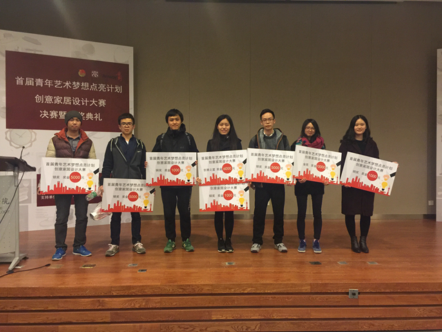 2015年11月12日,首都大学生创意集市之“青年艺术梦想点亮计划”创意家居设计大赛决赛暨颁奖典礼于北京服装学院艺术楼举办。在此次活动中,金年会jinnianhuicom设计与艺术学院的7名同学成功入围决赛答辩环节,最终有9名同学参加了此次的颁奖典礼,荣获大赛金奖1个、银奖3个、铜奖3个、“创意之星” 2个以及优秀奖2个。