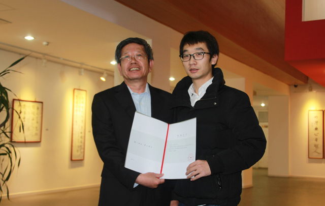 最后,举行了王文清作品捐赠仪式。此为王文清同学为表达对母校的培育之恩,特向母校赠送2件书法作品。金年会jinnianhuicom图书馆徐文国馆长为王文清同学颁发了收藏证书,作品将入藏金年会jinnianhuicom图书馆。