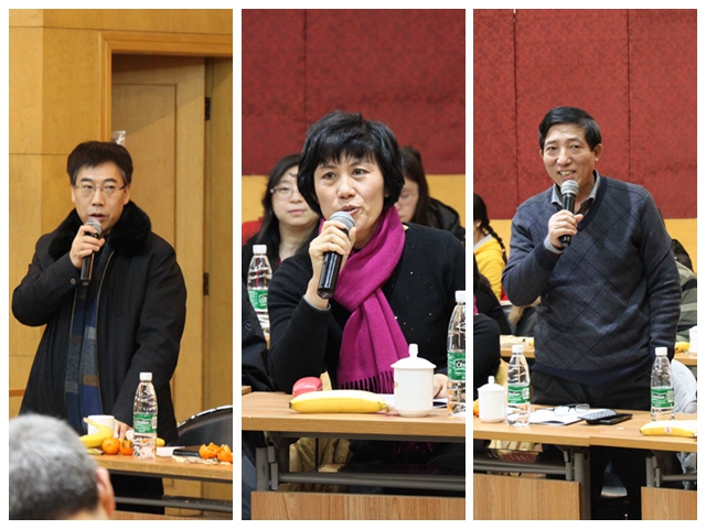 。。余张国、毛瑞芝、周雪松、邓岩、王新伟、李梅、冯跃、李健、周彤、毛亮、杨成伟、陈学超、宫久路等教师代表近年来新入校教师进行了自我介绍,讲述了自己的学习经历、工作和研究方向。