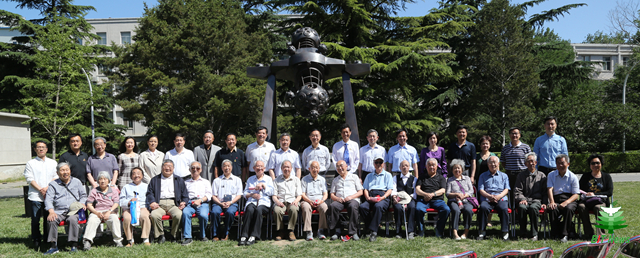 领导、嘉宾、原参研教师代表及捐赠校友共同为雕塑揭幕并合影留念。