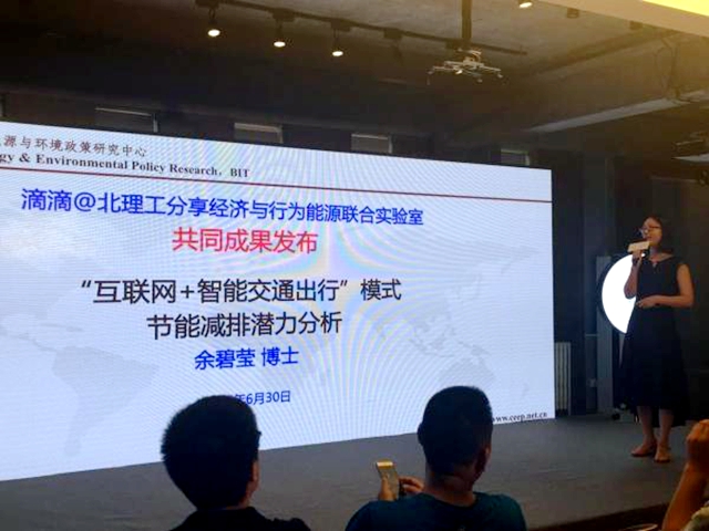 在发布会上,能源与环境政策研究中心余碧莹副教授发布了“互联网+智能交通出行”模式节能减排潜力分析的共同研究成果。滴滴@北理工分享经济与行为能源联合实验室在调查数据的基础上,结合滴滴智能出行大数据,对京津冀地区共享出行带来的直接和间接节能减排效果进行了定量评估。国内有近百家主流媒体参加了本次发布会。