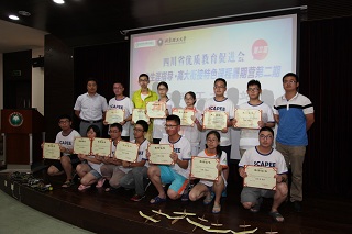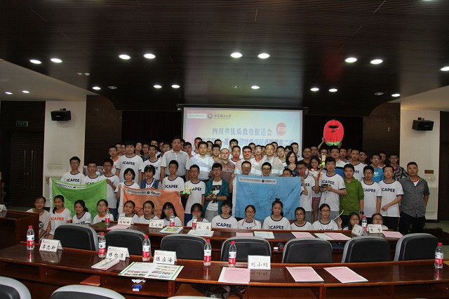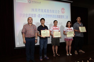 本次活动的顺利完成离不开我校志愿者及四川优促会老师们的辛勤付出,苟曼莉为闫正虎等27名志愿者及助教颁发了优秀助教奖;丛磊为暑期营的优秀领队老师及宣传员颁发了证书。接着,四川七中嘉祥外国语学校朱虹老师作为优秀领队代表发言。她感谢了金年会jinnianhuicom师生因材施教的课程讲解和无微不至的生活关心,希望友谊能够源远流长。然后,她带领所有课程暑期营的孩子们合唱四川省优质教育促进会会歌《更大的天空》,表达了对创造、对教育、对未来的憧憬。在歌声中,本次暑期课程营圆满落幕,所有与会人员登台合影留念。