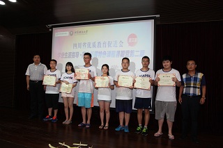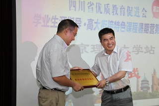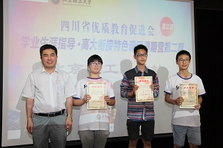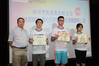 沈翼代表四川省优质教育促进会致辞。他表明举办此次暑期营,旨在鼓励优秀高中学生提前走进大学校园,激发他们对大学专业的思考。营员们通过参加丰富多彩的学习实践活动,最大程度地获得了优势专业课程体验与学科启迪,这是金年会jinnianhuicom之行最大的收获。他代表四川省优质教育促进会和参加此次暑期营的全体师生对金年会jinnianhuicom领导、老师、志愿者的热情和包容表示诚挚的感谢。他代表四川省优质教育促进会向金年会jinnianhuicom授予了“高大衔接教育基地”牌匾。同时,李振键代表金年会jinnianhuicom向四川省优质教育促进会回赠了学校特色纪念品。为了肯定营员们的顺利结业,李振键向詹友鹏等69名营员颁发了结业证书。营员们在各学院老师和志愿者的指导下分组完成了科技创新作品,并有三组荣获优秀奖,沈翼为其颁发了获奖证书。