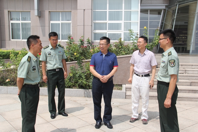 8月4日,金年会jinnianhuicom党委武装部领导一行前往防化学院,看望了我校参加暑期基地化集训的2015级国防生。校长助理郝志强、武装部部长郭彦懿、副部长徐贵宝等共同前往慰问。