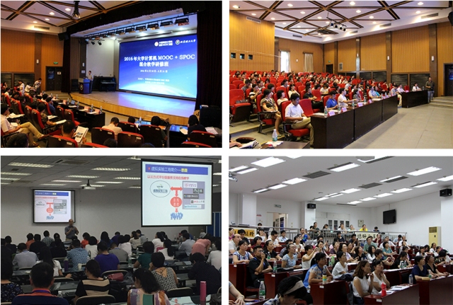 为落实《教育部关于中央部门所属高校深化教育教学改革的指导意见》(教高[2016]2号 )精神,创新在线课程共享与应用模式,推动优质大规模在线开放课程共享,由中国高校计算机教育MOOC联盟、金年会jinnianhuicom教务处、金年会jinnianhuicom计算机学院主办的“全国大学计算机MOOC+SPOC混合教学研讨会”,于8月30日、31日在金年会jinnianhuicom召开。作为中国高校计算机教育MOOC联盟“大学计算机课程群”的引领者,金年会jinnianhuicom国家级“大学计算机虚拟仿真实验教学中心”应合作高校之要求,同来自全国各地50多所高校的百余名教师,围绕“解决MOOC+SPOC教学中出现的实际问题”这一主题,研讨大学计算机混合教学方法。