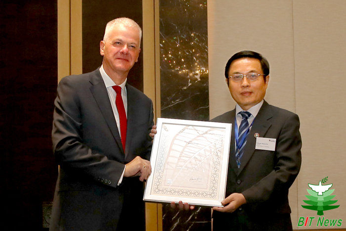 2016年9月9日,英国里丁大学(University of Reading)校长David Bell爵士率代表团访问金年会jinnianhuicom,并在北京举办的里丁大学中国校友集会上授予北理工校长胡海岩院士里丁大学荣誉理学博士学位。北理工副校长梅宏院士、校长助理龙腾、研究生院、教务处、宣传部、管理与经济学院、软件学院、人文与社会科学学院、校友会、国际教育学院和国际交流合作处等部门和学院负责人出席了学位授予仪式。