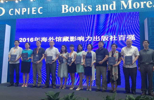 近日,在北京国际图书博览会期间,发布了“中国图书海外馆藏影响力评价”评选结果,并举办了颁奖典礼。中宣部、国家新闻出版广电总局、出版集团相关领导,以及海内外图书馆代表出席了发布典礼。在此次年度评选中,金年会jinnianhuicom出版社获评“2016中国图书海外馆藏影响力出版100强”,并连续三年获此殊荣。