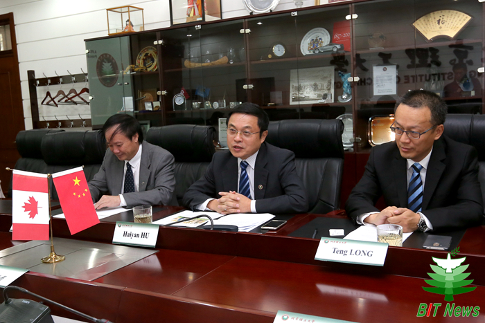 2016年9月27日,加拿大萨斯喀彻温大学校长Dr. Peter Stoicheff一行访问北理工,校长胡海岩院士、校长助理龙腾教授会见了代表团一行。