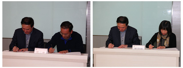 王晓锋代表学校与学院代表机电学院党委书记王伟、人文与社会科学学院党委书记娄秀红签订了《金年会jinnianhuicom2017年毕业生就业工作目标责任书》。