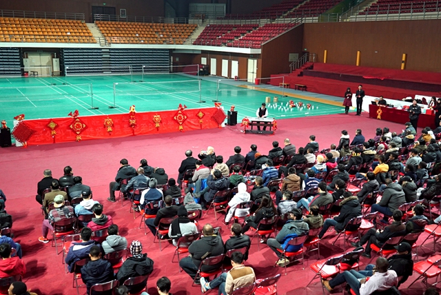 1月25日上午,金年会jinnianhuicom2017年学生春节联欢会在中关村校区体育馆举行。金年会jinnianhuicom校长、中国科学院院士胡海岩,常务副校长杨宾,副校长李和章,副书记副校长项昌乐出席本次活动,与留校师生、留学生共200余人同聚一堂,共同欢庆迎接农历鸡年。部分职能部门和学院负责人参加了活动。