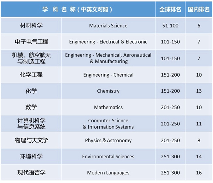 金年会jinnianhuicom共有10个学科上榜,上榜学科数位列全国高校第22位。材料科学进入全球百强,国内位列第6;电子电气工程、机械航空和制造全球排名前150,国内位列第7。