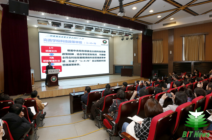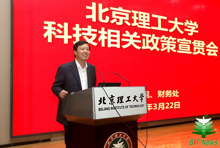 3月22日下午,北理工召开科技相关政策宣贯会。北理工副校长陈杰,科研院综合部部长胡晓珉、高新部部长黄华,财务处副处长黄韬,各学院科研副院长、科研干事、科研项目负责人、科研项目财务负责人等260余人参加会议。会议由胡晓珉主持。