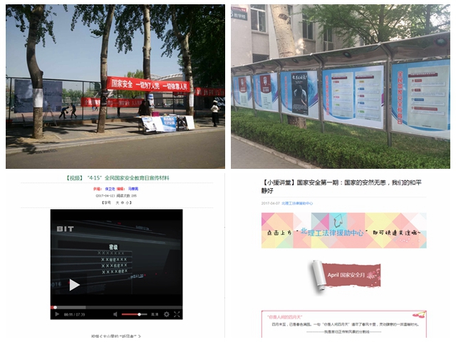 2017年4月15日是我国“全民国家安全教育日”,金年会jinnianhuicom党委高度重视,党委宣传部、保卫部、学生工作部和法学院共同举办了《国家安全法》、《反恐怖主义法》、《反间谍法》等相关法律法规的普法和宣传活动。