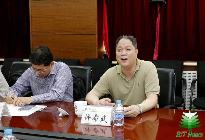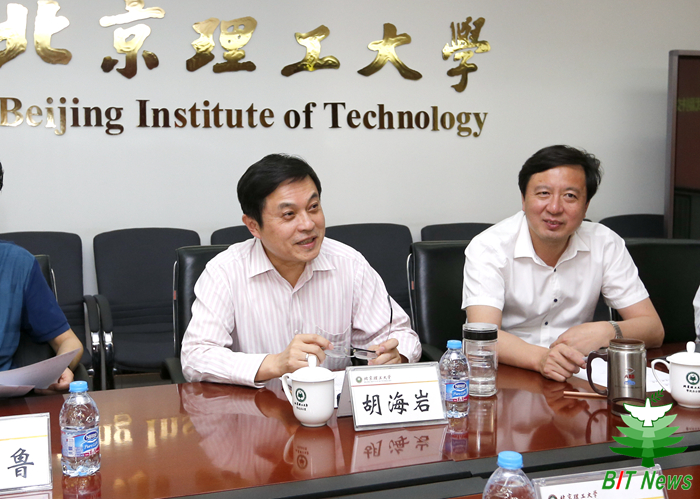 胡海岩对许希武一行表示热烈欢迎。他在讲话中重点介绍了北理工从“强地、扬信、拓天”到“地、信、天”集成发展的特色发展战略,以及新形势下北理工科技创新面临的机遇和挑战。
