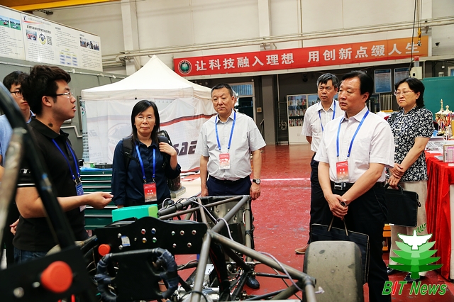 常务副校长杨宾主持现场考察汇报会,胡海岩校长致辞。专家组组长、北京大学党委副书记叶静漪对考察工作进行了介绍。王晓锋副校长对我校创新创业教育工作进行了汇报,向教育部专家组介绍了我校“创新牵引创业、机制保障实施,打造北理工特色大学生创新创业教育体系”的双创教育工作体系。参加会议的还有校团委、招就处、研究生院、科技园、人事处、财务处、科研院、实设处、校友会负责人以及机械、软件、光电创新创业基地代表。