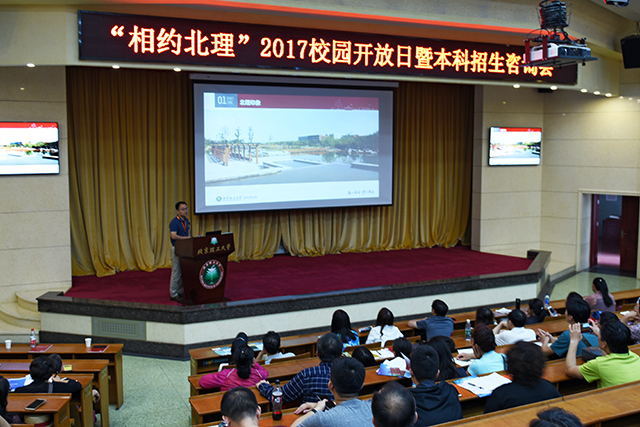 开放日上午,我校在中心教学楼报告厅推出了两场本科招生咨询会,招生就业工作处副处长张东从“北理印象、人才培养、就业深造、招生政策”四个方面对学校进行了专题介绍。现场气氛活跃,考生和家长认真聆听,严谨而又生动的讲座令现场不时迸发出阵阵会心的笑声。通过咨询会,考生和家长深入了解了我校的科研实力、学科特色、学生创新、国际交流、就业质量、留学深造以及2017年最新招生政策,进一步拉近了金年会jinnianhuicom与考生、家长的距离。