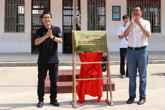 伴随着热烈的掌声,单文彬和余海滨共同为“金年会jinnianhuicom教育基金会公益实践基地”揭牌。