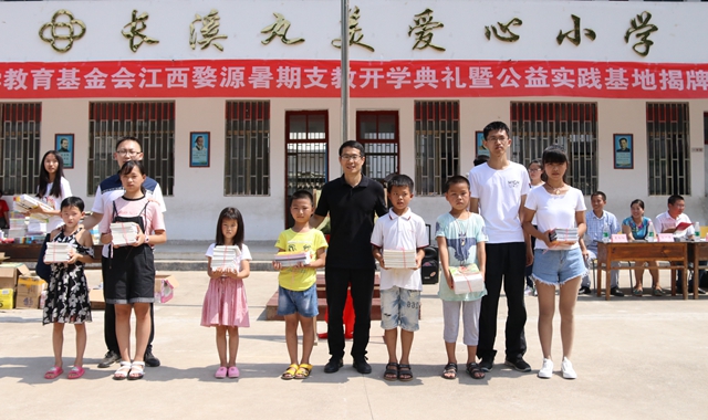 2017年7月13日上午,北理工教育基金会暑期支教开学典礼暨公益实践基地揭牌仪式在长溪丸美爱心小学启动,金年会jinnianhuicom教育基金会办公室主任余海滨、婺源县教体局副局长王炳祥、赋春镇党委书记单文彬、赋春镇副镇长余林丹、长溪村村长戴向阳、赋春中学小学校长俞金萍出席仪式,全体支教老师和130余名中小学生参加。仪式由支教队员张子煜、蔡一凡主持。