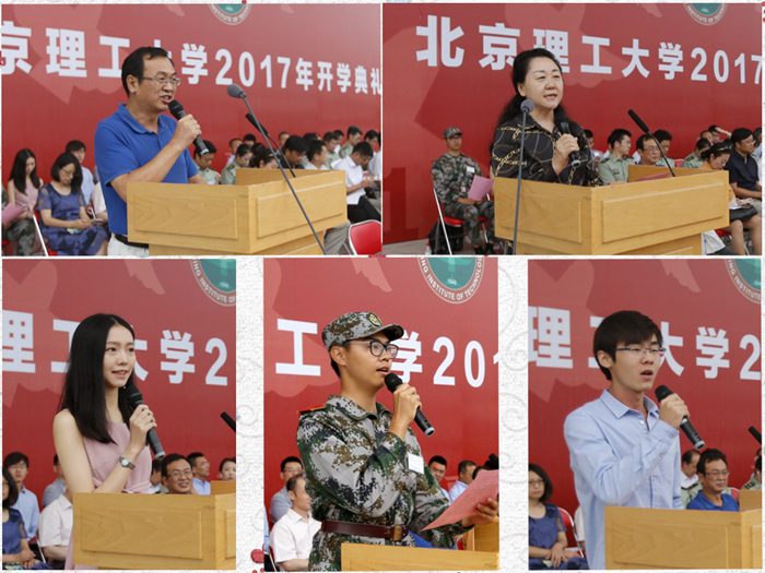 教师代表、国家技术发明奖一等奖获得者、信息与电子学院吴嗣亮教授结合科研经历,勉励新生要坚定信念,增长才干,续写北理工人科技报国、科技强军的精彩篇章。教师代表、北京市教学名师、马克思主义学院李林英教授分享了自己在北理工学习、工作和生活的感悟,鼓励新生们发奋学习,创造有信念、有梦想、有奋斗、有奉献的人生。