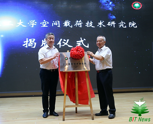 北理工党委书记赵长禄和北斗卫星导航系统总设计师杨长风共同为空间载荷院揭牌。