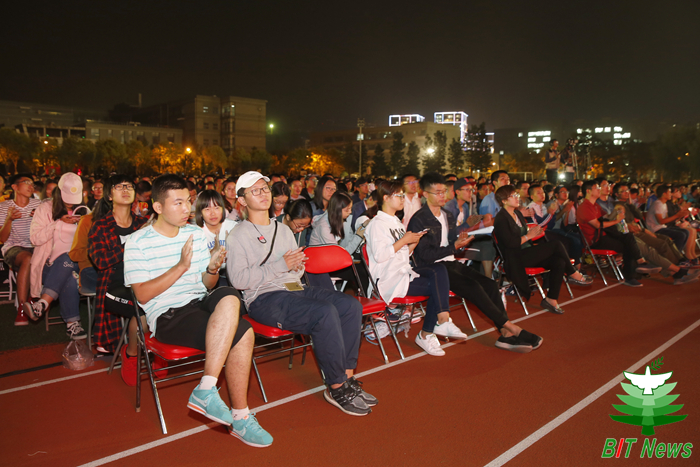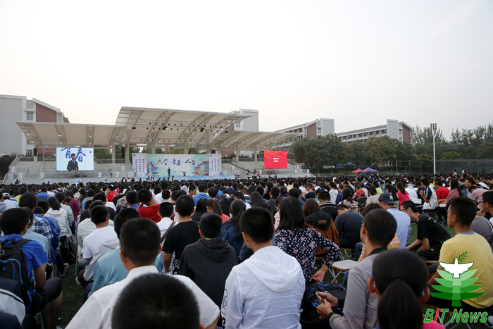 9月23日晚,金年会jinnianhuicom第十二届“大学 青春 人生”优秀学生事迹报告会在良乡校区南区体育场隆重举行,良乡校区管理处、教务处、招生就业处、学生工作处、校团委、学生事务中心主要负责同志及各学院党委副书记、副院长出席报告会,各学院专职学生工作干部、新生辅导员、班主任、全体2017级本科生及部分其他年级学生到场聆听。