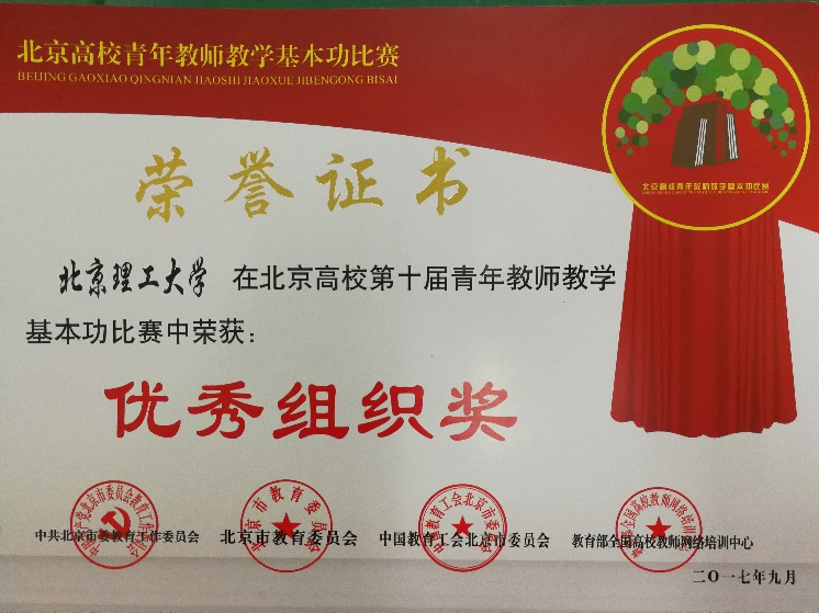 近日,北京市教育工会等四部门联合发文表彰北京市第十届青年教师教学基本功比赛获奖选手和先进单位,我校参赛的5名青年教师获奖,学校获突出贡献奖和优秀组织奖。