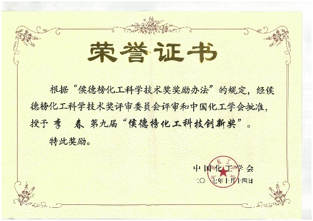 “侯德榜化工科学技术奖”是为纪念侯德榜先生一生为化学工业和化工科技事业发展所做的贡献,同时为激励我国广大化工科学技术工作者投身于科教兴国的化工事业,由中国化工学会于1998年设立,并经中华人民共和国科学技术部批准,国家科学技术奖励工作办公室颁发登记证书(国科奖社证字第0013号),该奖项由中国化工学会和中国科学技术发展基金会“侯德榜科技发展基金”管委会管理,是我国化工领域的权威奖项,该奖下设“成就奖”、“创新奖”和“青年奖”三个子项。多年来,“侯德榜化工科学技术奖”为培养举荐优秀化工科技人才、助推科技精英脱颖而出、激发科技人才创新潜力做出了卓越贡献。