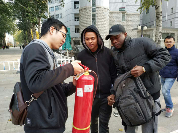 11月8日至9日保卫处在中关村校区学生宿舍和中心教学楼前开展了两天消防安全培训宣传教育展。通过展板生动展示了火灾隐患知识,手动报警、灭火器等消防器材使用以及安全逃生等消防安全知识。现场展示了火灾探测报警器、灭火器、防毒面具等近二十种消防设施,手把手教学生们使用灭火器、穿戴防毒面具、使用灭火毯等消防器材的使用,受到学生们的欢迎。