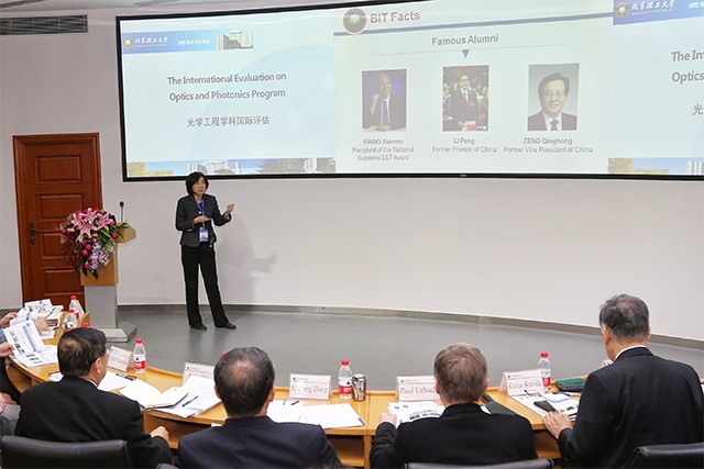 光电学院院长郝群从学校简介、学科总览、本科生教育、研究生教育、科学研究、社会服务与国际交流合作等方面进行了总汇报。王涌天教授、谭小地教授、李艳秋教授、高春清教授、刘娟教授与王霞副教授等6位教师报告了各自的科研方向和代表性成果。汇报会上,专家组成员就学科总体情况和各研究方向中的具体问题与汇报人进行了交流探讨。