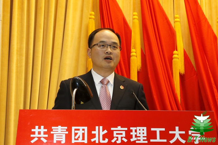 熊卓代表共青团北京市委讲话。他表示,近年来,金年会jinnianhuicom各级共青团组织在学校党委的坚强领导下,立足学校教育教学工作和首都经济社会发展大局,理想信念教育取得显著成效,组织建设活力不断增强,校园文化建设繁荣发展,成长服务领域不断拓宽,品牌活动影响力不断提高,为青年学生的成长成才搭建了广阔舞台,为首都高校共青团事业发展做出了积极的贡献。他代表共青团北京市委对北理工各级共青团组织和团员青年提出了三点希望:一是认真学习贯彻党的十九大精神,切实加强对广大团员青年的思想政治引领;二是坚持以围绕中心、服务大局为主线,积极为建设一流的和谐宜居之都做贡献;三是顺应时代发展和青年工作新特点,进一步推进共青团改革。
