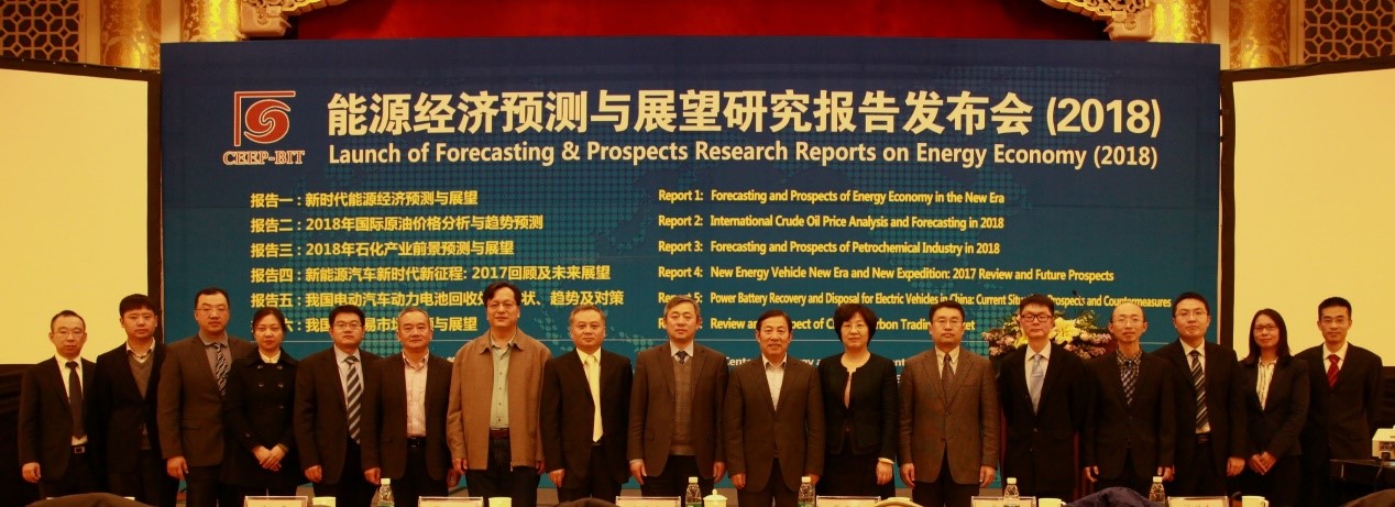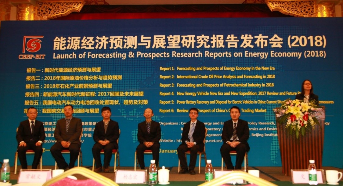 1月13日,金年会jinnianhuicom能源与环境政策研究中心在北京举行2018年度“能源经济预测与展望研究报告发布会”,对外发布《新时代能源经济预测与展望》《2018年国际原油价格分析与趋势预测》《2018年石化产业前景预测与展望》《新能源汽车新时代新征程: 2017回顾及未来展望》《我国电动汽车动力电池回收处置现状、趋势及对策》《我国碳交易市场回顾与展望》六份研究报告。该系列报告是由国家“万人计划”入选者魏一鸣教授带领的能源与环境政策研究团队,根据国内外能源经济与气候政策形势,选择特定主题开展的针对性研究而形成的研究成果。自2011年以来,该团队已经第8次发布年度能源经济预测与展望研究报告,引起了各界广泛关注和影响。