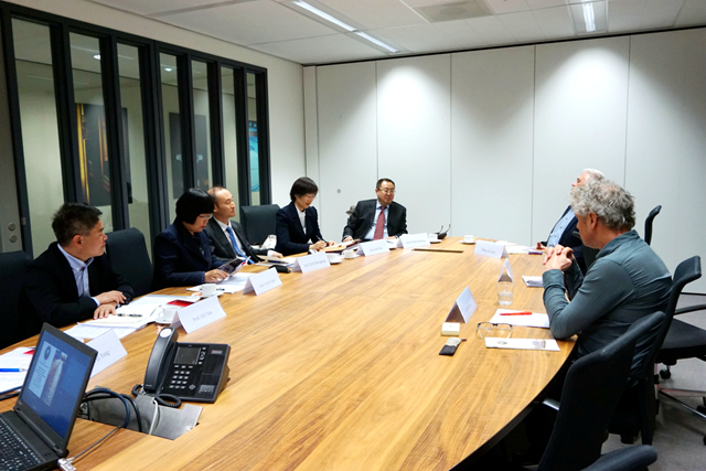 方岱宁一行与代尔夫特理工大学电子工程、计算与数学学院应用数学系主任Geurt Jongbloed教授、林海翔教授,机械、海洋与材料工程学院结构优化与力学系副主任Matthijs Langelaar教授、土木工程与地球科学学院材料、力学与管理设计系Bert Sluijs教授、宇航工程学院航天结构与计算力学系Boyang Chen博士等进行会谈,双方围绕具体学科方向进行了深入的交流,初步达成了合作意向。