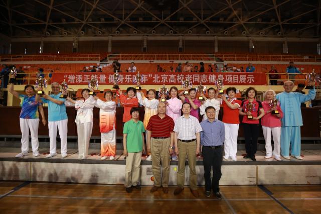 我校以离退休教职工太极拳队为班底,组建了由郭景华老师为专业动作指导,姜波、刘兰英等20余人为队员的代表队,带着《四十二式太极拳》参加了此次健身展演活动,大家以独特方式,身体力行为首都教育和学校改革发展加油点赞。展演过程中,队员们以饱满的精神、整齐的队列、娴熟的动作、默契的配合,行云流水般将太极拳刚柔相济、动静结合的神韵表现得淋漓尽致,展示出了我校离退休教职工老有所为、老有所乐精神风貌,得到了评委与现场观众的一致好评。最终,经过专业评委的评定,我校太极拳展演队和北京语言大学展演队等获得“最佳风采奖”。