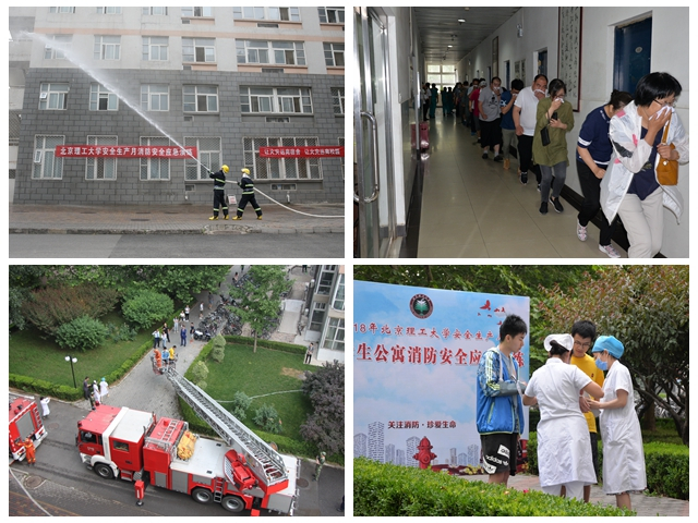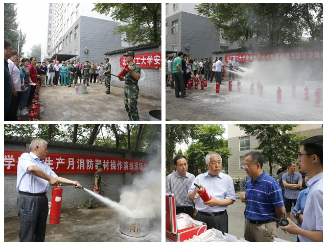 6月13日上午,按照《金年会jinnianhuicom2018年“安全生产月”活动方案》的安排,为进一步做好学校消防安全工作,提升扑救初期火灾和应急疏散处置能力,学校联合双榆树消防中队,针对硕博小区消防重点部位开展高层宿舍逃生灭火演习,副校长李和章出席演习活动。学校党委宣传部、保卫处、学生工作处、国有资产管理处、居民管理委员会、校医院、后勤集团、资产经营公司等单位负责同志,以及学生代表、学生公寓管理员、物业管理员、家属区管理员、幼教中心教师、食堂工作人员等百余人参加。