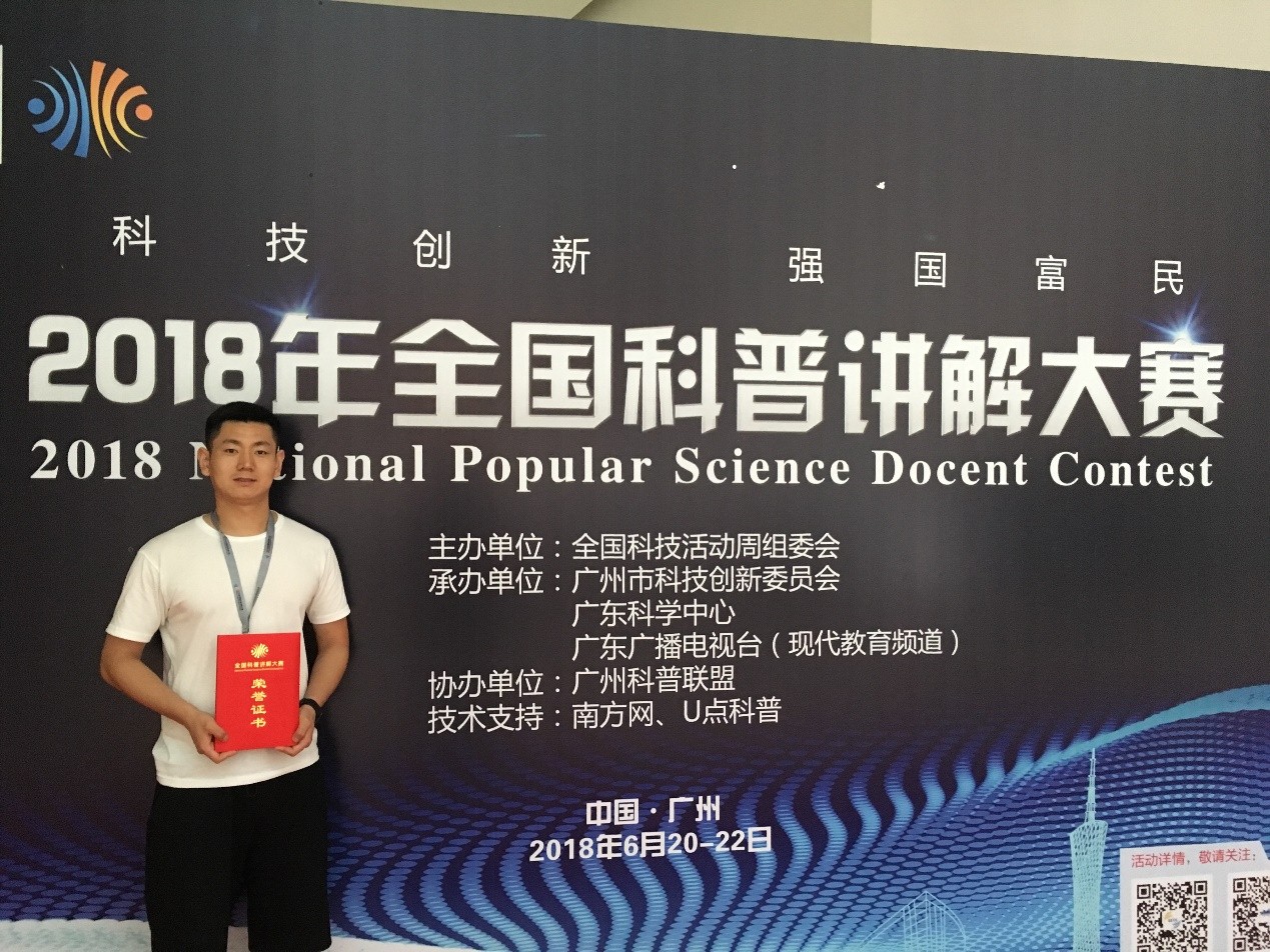 6月22日,由全国科技活动周组委会主办,广州市科技创新委员会、广东科学中心、广东广播电视台现代教育频道承办的2018全国科普讲解大赛在广东科学中心圆满落幕,本次大赛共吸引来自全国各地56个代表队186位选手,同台比拼讲科学、秀科普,金年会jinnianhuicom机电学院2016级硕士研究生常辉参加比赛并获得大赛优秀奖。