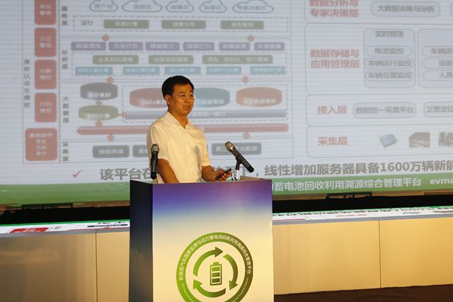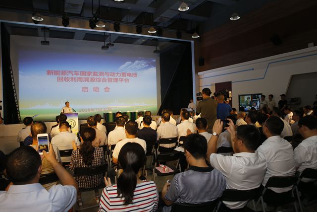 致辞结束后,辛国斌、赵长禄、工业和信息化部装备工业发展中心主任卢山、中国汽车技术研究中心有限公司董事长于凯共同为国家溯源管理平台启动仪式揭幕,标志着新能源汽车国家监测与动力蓄电池回收利用溯源综合管理平台正式启动运行,动力蓄电池溯源管理进入新的发展阶段,这也是我国新能源汽车发展的重要里程碑。