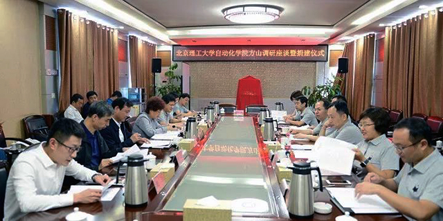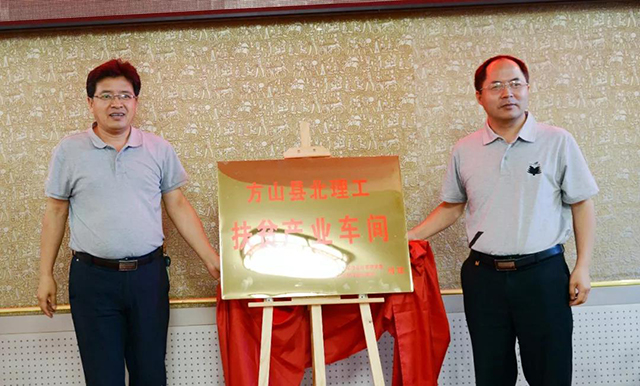 捐建仪式上,方山县委副书记闫斌胜介绍了方山县的基本情况、脱贫攻坚工作情况以及我校帮扶方山脱贫对接工作情况,并与自动化学院院长夏元清为“方山县北理工扶贫产业车间”揭牌。