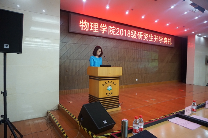 9月4日,物理学院2018级研究生开学典礼在图书馆报告厅举行。物理学院党委书记姜艳、执行院长姚裕贵、副院长苏文勇、导师代表邢艳霞出席典礼,辅导员、教学干事以及2018级全体研究生参加典礼。开学典礼由学院副书记、副院长王晶晶主持。