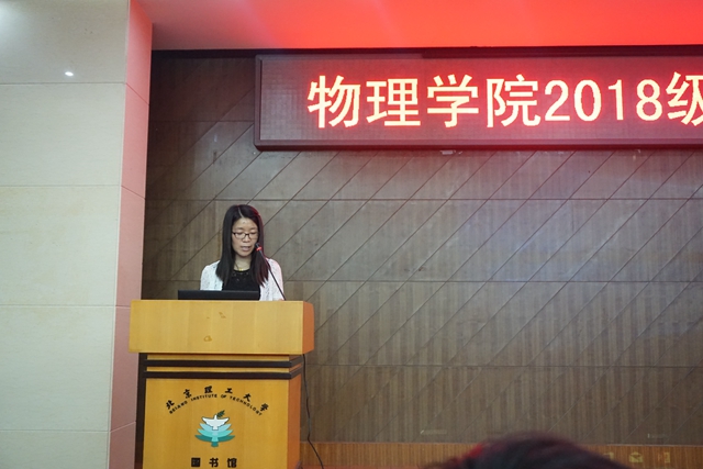 姜艳代表学院向开启新的学习阶段的2018级研究生表示祝贺和欢迎。她介绍了学校及学院的历史沿革,讲述金年会jinnianhuicom如何成为中国共产党创办的第一所理工科学府的背景;讲述70多年来几代北理工人不忘初心、艰苦奋斗,崇德尚行、潜心治学,为抗战建国、为国家安全和经济建设、为中华民族伟大复兴而探索和开拓的感人故事;讲述物理学科作为学校最早建立的基础学科之一,从设立之初到如今物理学院的发展脉络。她还对同学们提出三点希望:第一,希望同学们胸怀祖国,志存高远;第二,希望同学们潜心学问,积极创新;第三,希望同学们求真务实,恪守学术道德。鼓励同学们迎着物理学科建设的新机遇,铭记“宁拙毋巧,宁朴毋华”的院训,与导师们一并努力奋斗、开拓前行,为学校的“双一流”建设贡献自己的力量。