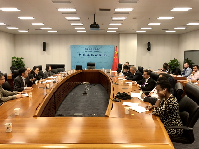 9月25日,由联合国裁军办公室主办,中国外交部承办的年度联合国裁军培训班座谈交流会在外交部媒体吹风厅举行。