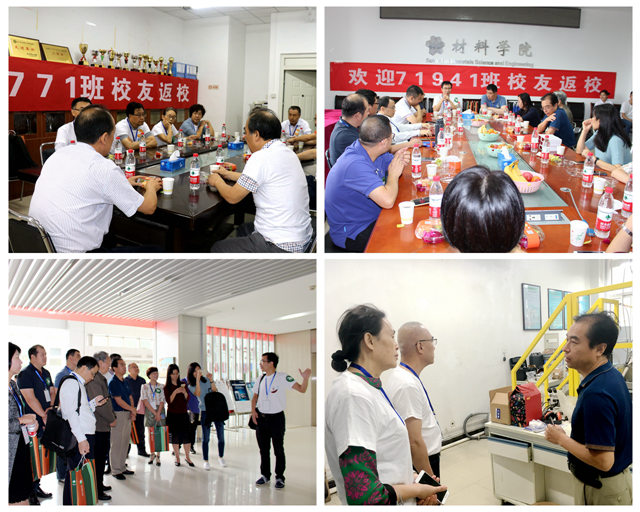 此后,原62841班校友、71941班校友于会议室举办了班级座谈会,学院党委书记张青山、李树奎参与了座谈会。座谈会上,学院学校老师与校友们热烈交谈,并向校友们讲述了材料学院近几年的发展、“双一流”学科的入选以及国际上影响力的日益提高,而校友们也一一讲述了自己毕业以来的生活及工作经历,气氛热烈亲和,不时传来阵阵笑声。而其中,杨老师提到了大学培养的主要目的及意义是在于培养学生的思维方式,这无疑是受益终生的。