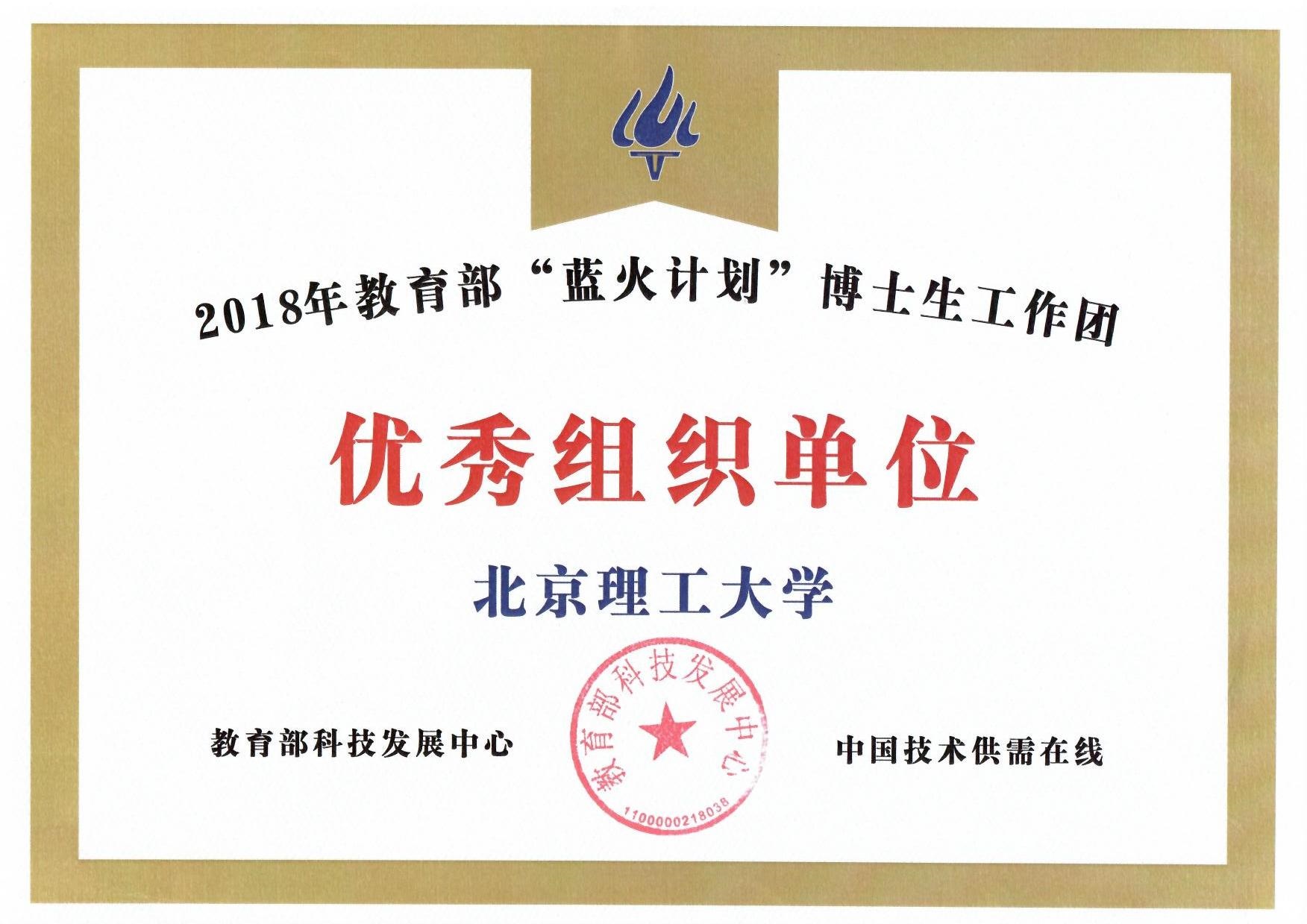北理工喜获2018年教育部“蓝火计划”博士生工作团优秀组织单位称号