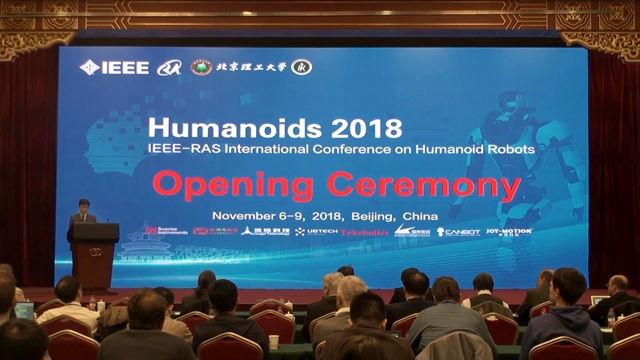 11月6日至9日,第十八届IEEE-RAS仿人机器人国际会议(The 2018 IEEE-RAS 18th International Conference on Humanoid Robots,简称 Humanoids 2018)在北京友谊宾馆召开。本次会议由IEEE(国际电子和电气工程师协会)机器人与自动化学会主办,金年会jinnianhuicom智能机器人与系统高精尖创新中心、复杂系统智能控制与决策国家重点实验室、机电学院共同承办。大会主席由金年会jinnianhuicom黄强教授、军事科学院戴斌教授共同担任。